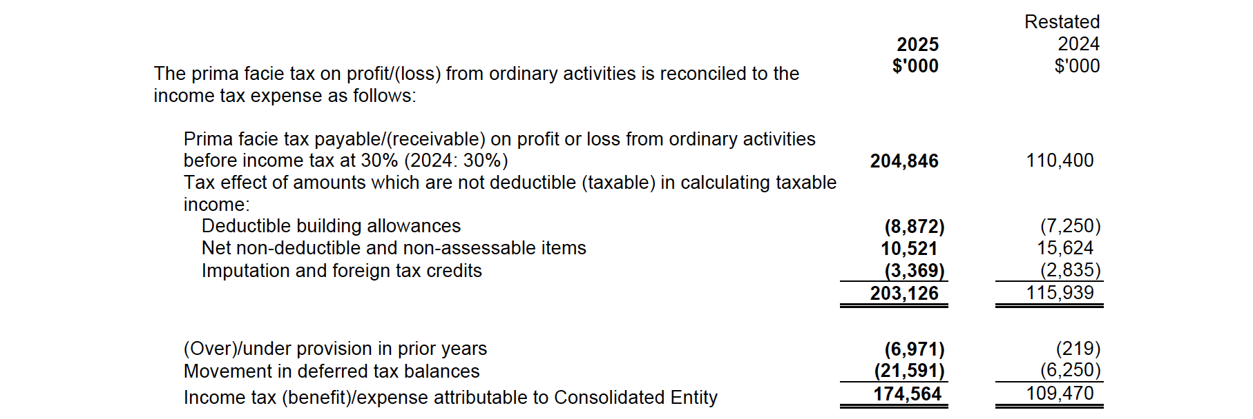 For financial reporting purposes, PIPL and its subsidiaries prepare consolidated financial statements which detail the consolidated accounting profit or loss before tax and related tax expense or benefit. A full reconciliation of the consolidated accounting net profit to income tax paid is set out below: